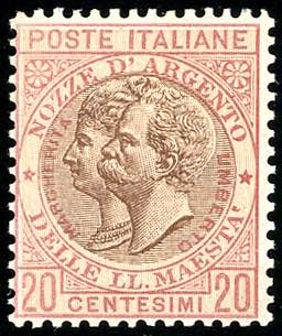 Lot 1052 - 1893 - 20 cent. rosso bruno e bruno Nozze d'argento, non ...