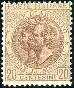 Lot 1053 - 1893 - 20 cent. verde oliva e bruno, Nozze d'argento, non ...