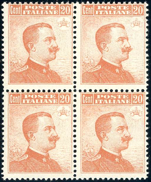 Lot 1103 - 1916 - 20 cent. Michetti, senza filigrana (107), blocco di ...