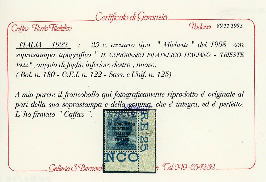 Lot 1114 - 1922 - Congresso Filatelico (123/126), centratura ...