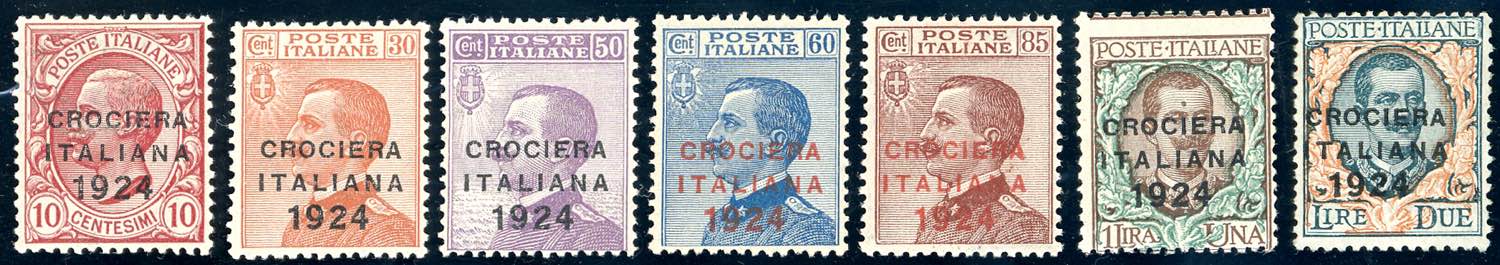 1924 - Crociera Italiana, serie completa (162/168), gomma originale integra, perfetti. A.Diena per il 2 lire, tutti Ferrario.