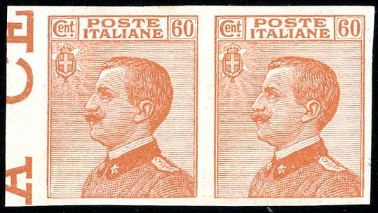 Lot 1173 - 1926 - 60 cent. Michetti, coppia orizzontale non dentellata ...