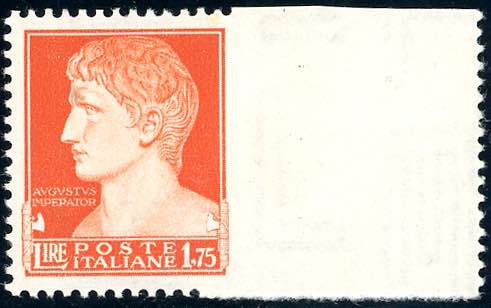1929 - 1,75 lire Imperiale, non dentellato a destra (254d), bordo di foglio, gomma originale integra, linguella solo sul bordo, perfetto. Molto fresco. Cert. Raybaudi.