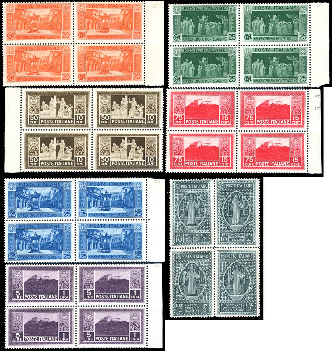 Lot 1210 - 1929 - Montecassino, serie completa (262/268), blocchi di ...