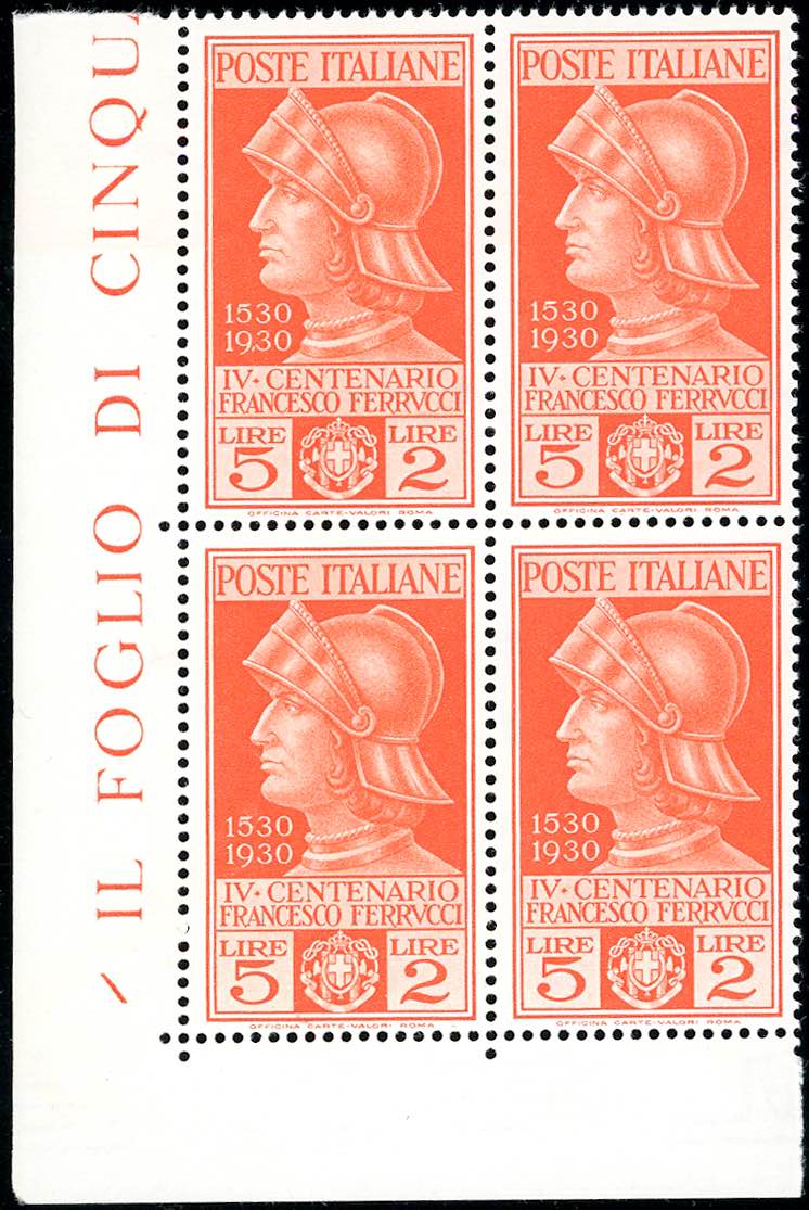 Lot 1212 - 1930 - Ferrucci, serie completa (276/280+A), blocchi di ...