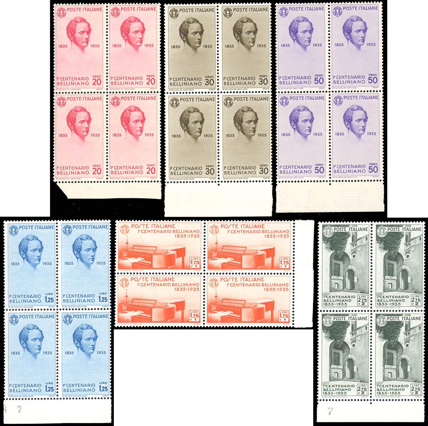 Lot 1236 - 1935 - Bellini, serie completa (388/393+A), blocchi di ...