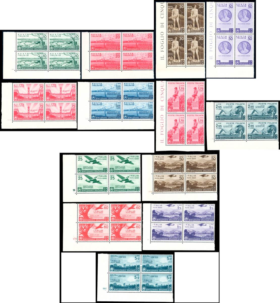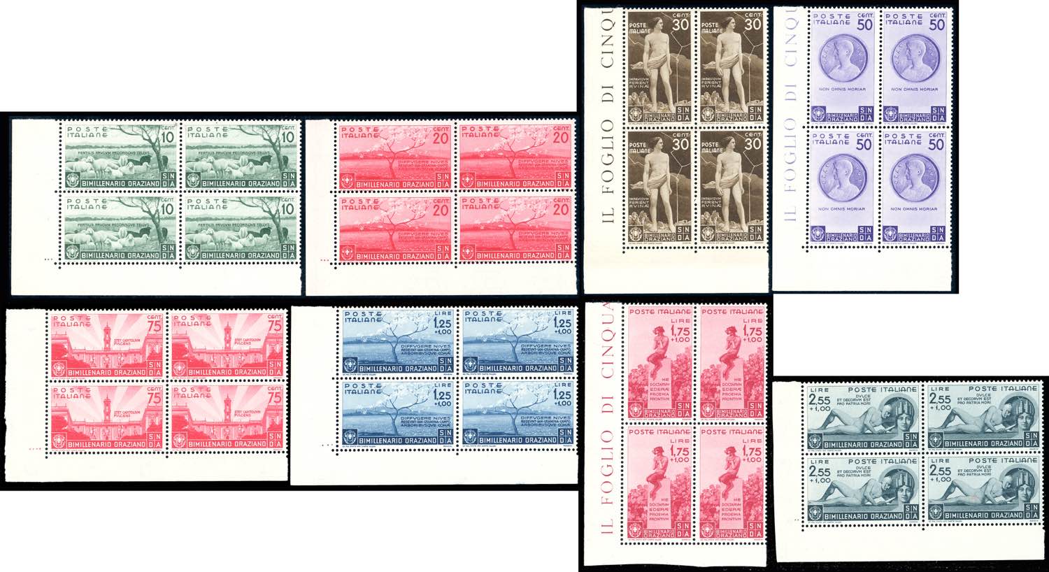 Lot 1239 - 1936 - Orazio, serie completa (398/405+A), blocchi di ...