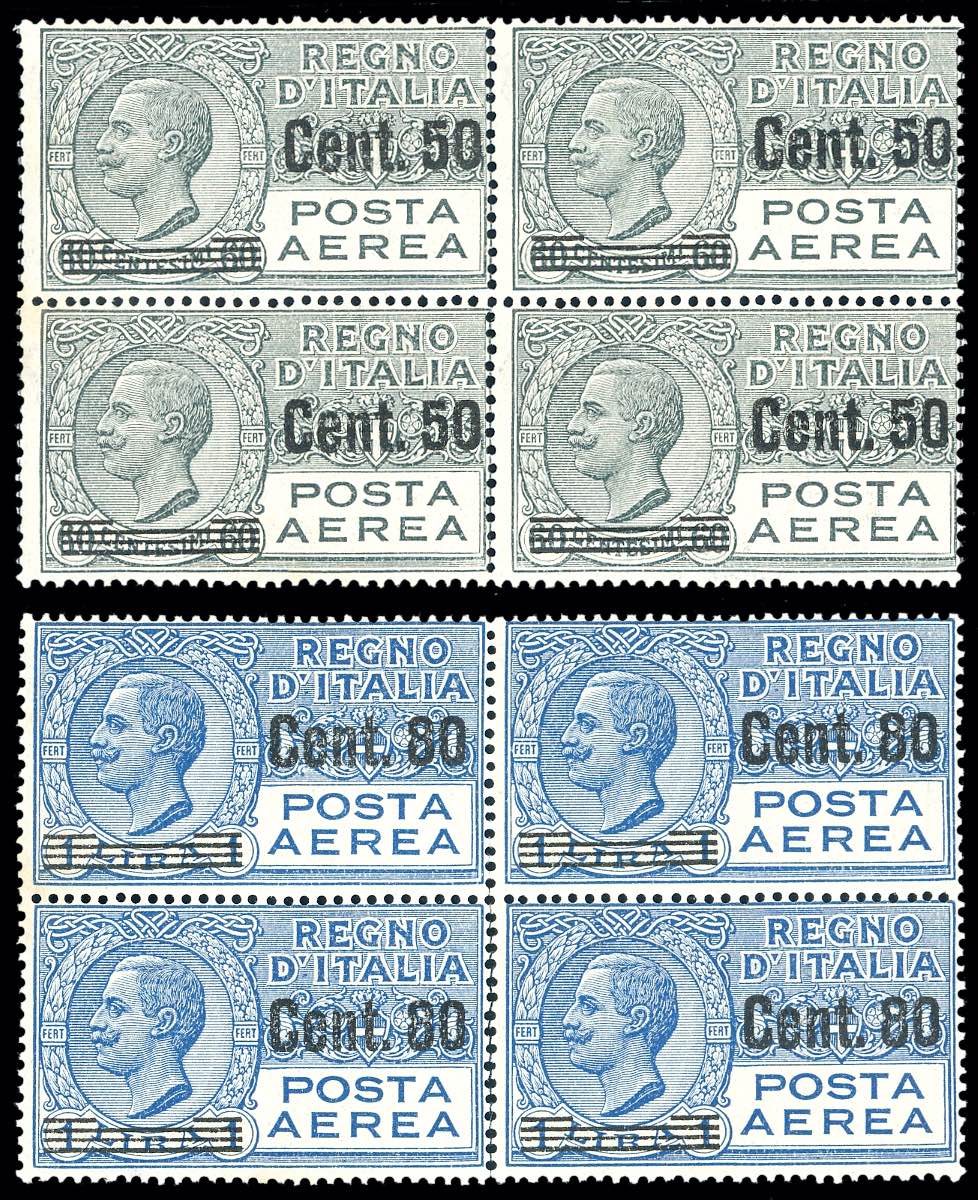 1927 - Soprastampati (8/9), blocchi di quattro, gomma originale integra, perfetti. Freschissimi.