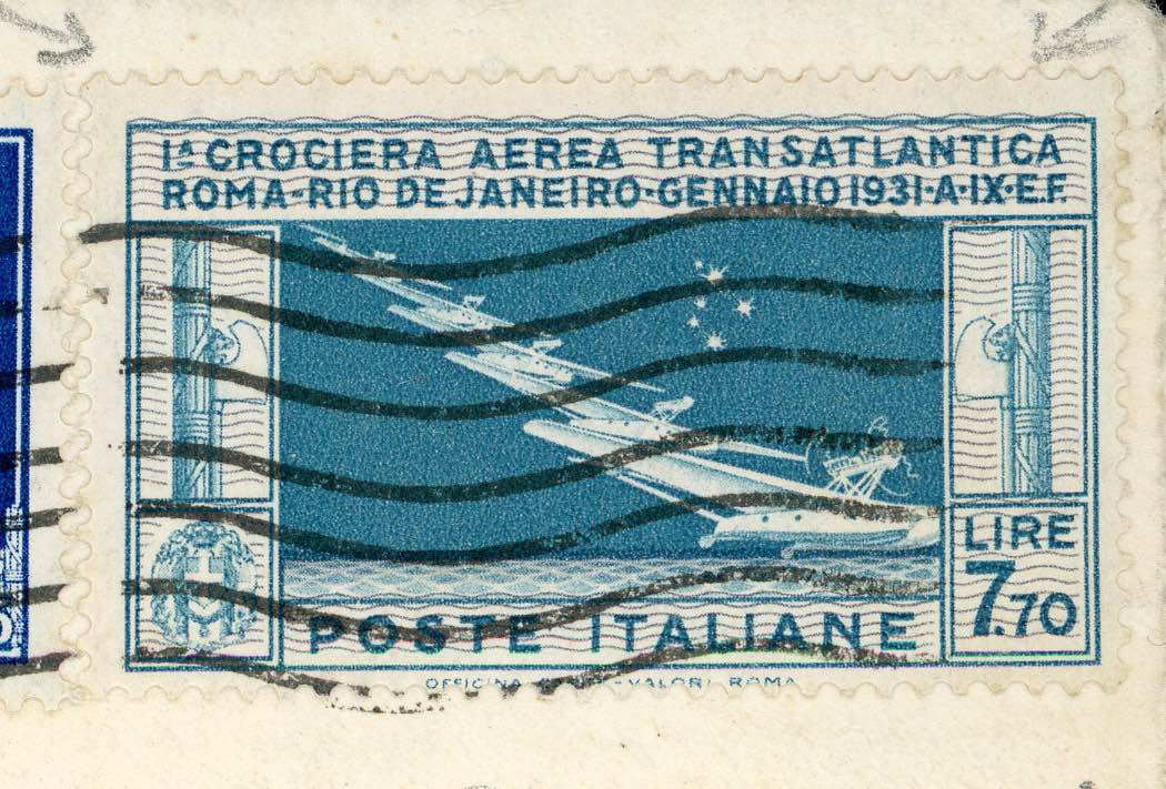 1930 - Aerogramma della Crociera Transatlantica di Balbo da Roma 15/12/1930 a Rio de Janiero, affrancato con 1,25 lire Imperiale e 7,70 l. ... Read more