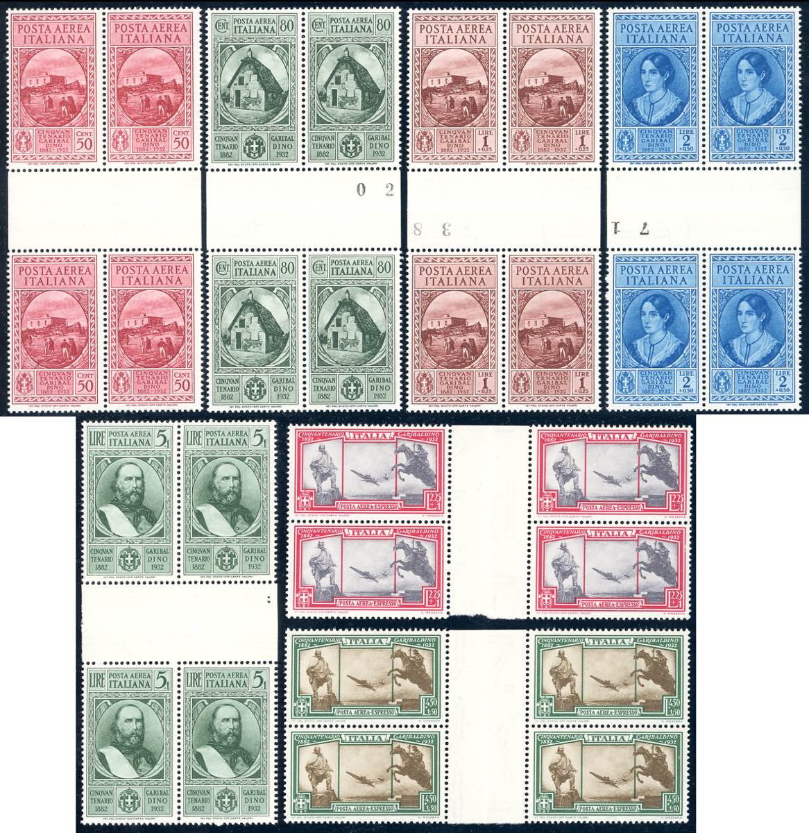 Lot 1270 - 1932 - Garibaldi (32/38), blocchi di quattro con ...
