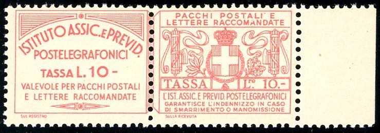 1936 - 10 lire Istituto Assicurazioni (16), bordo di foglio, gomma originale integra, perfetto. Splendido. E.Diena, Raybaudi.
