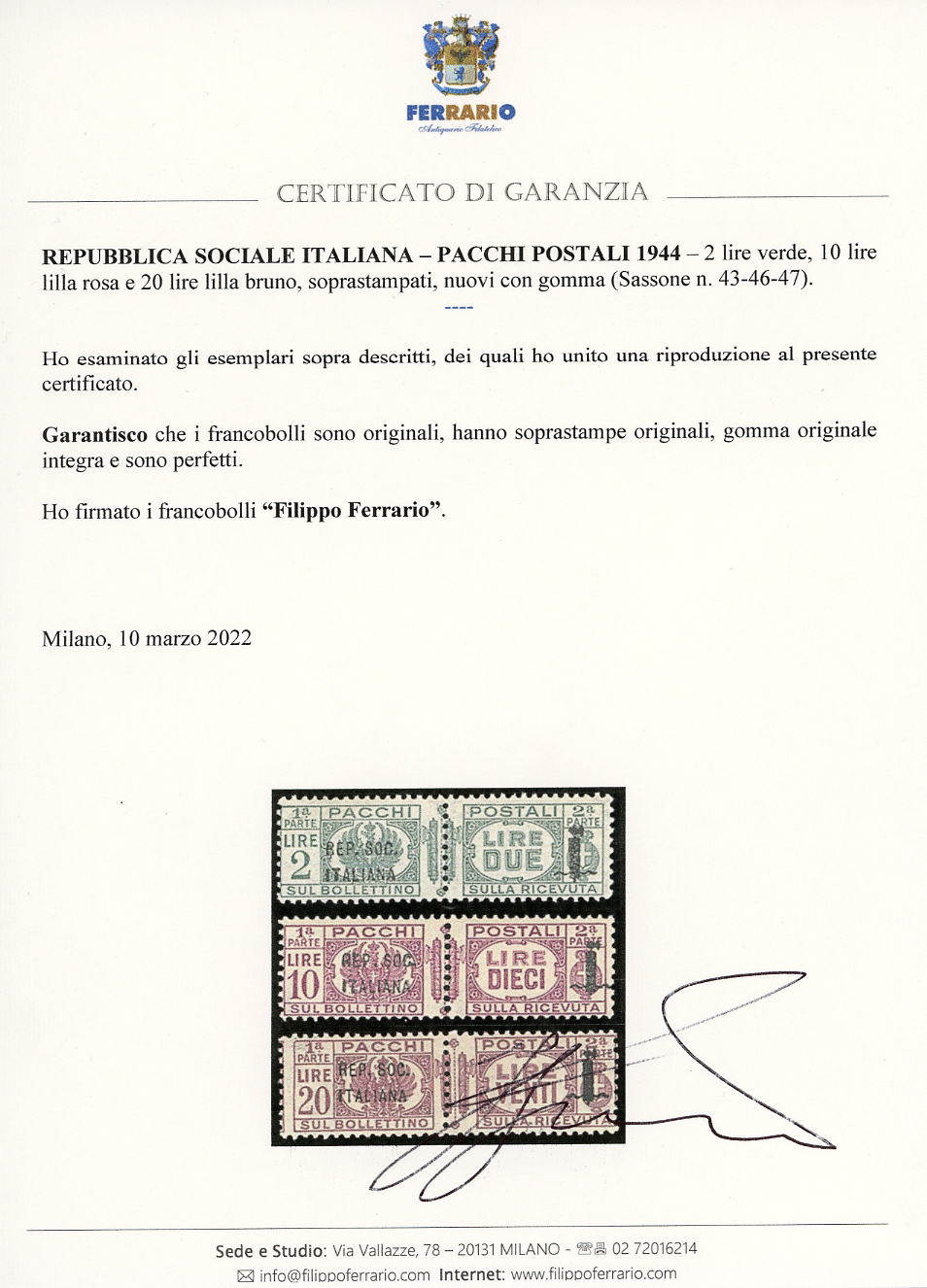 1944 - Soprastampati, serie completa (36/47), gomma originale integra, perfetti. Molto freschi. Cert. Ferrario per gli alti valori.