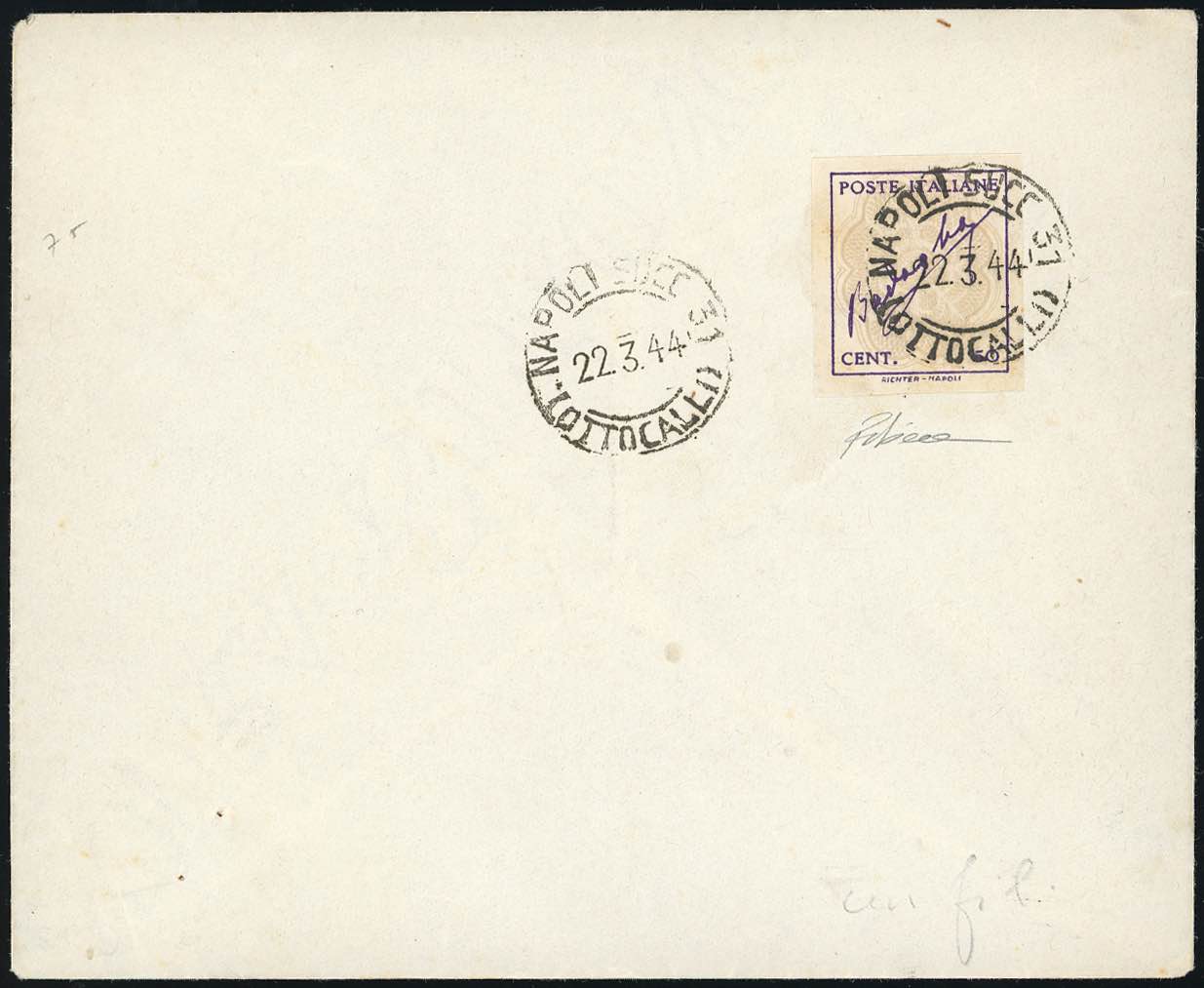1944 - 50 cent. violetto e grigio bruno Badoglio, non dentellato (515Eb), perfetto, usato su busta viaggiata a "Napoli 22/3/1944". Raro. ... Read more
