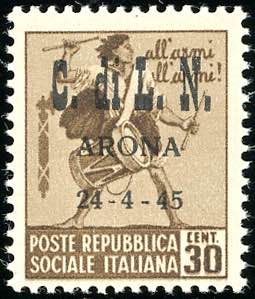 Lot 1836 - ARONA 1945 - 30 cent. Monumenti Distrutti, senza filigrana ...