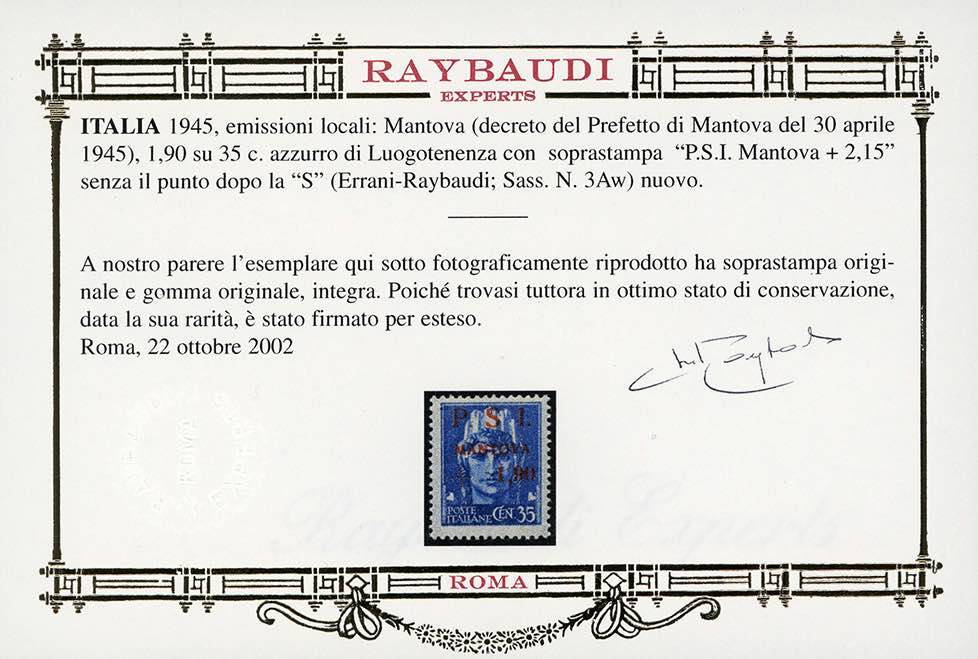 Lot 1861 - MANTOVA 1945 - 1,90 su 35 cent., errore di valore, senza ...