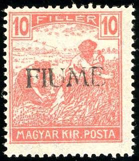 Lot 1936 - FIUME 1918 - 10 f. vermiglio Mietitori, soprastampa a mano, ...