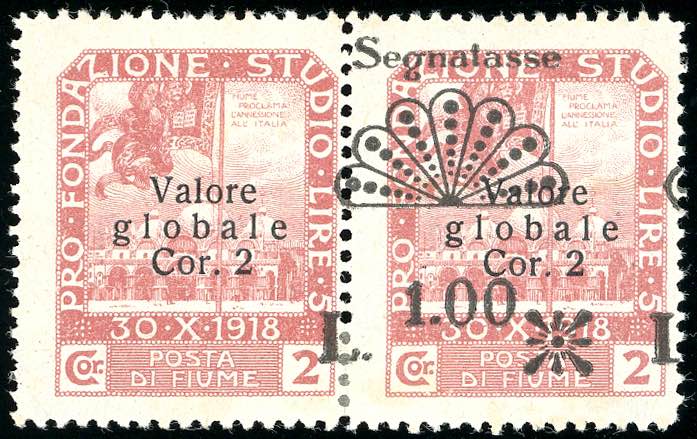 Lot 1963 - FIUME SEGNATASSE 1921 - 1 lira su 2 corone, coppia ...