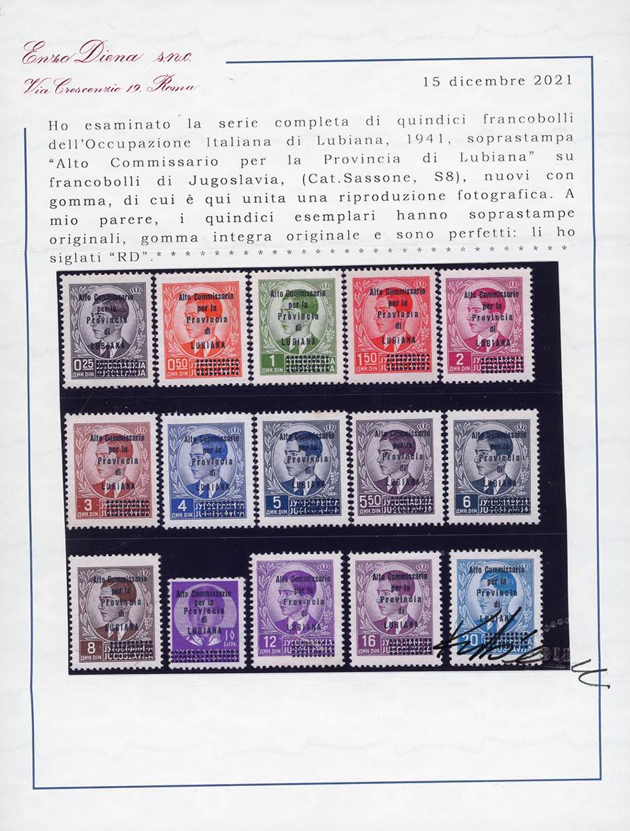 Lot 1989 - LUBIANA 1941 - Soprastampati "Alto Commissario", serie ...