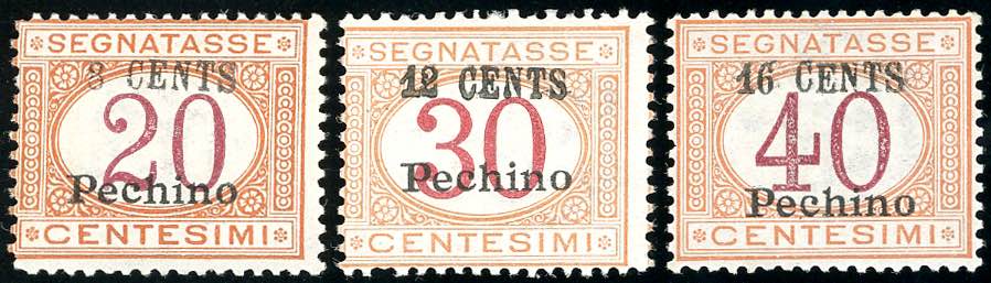 PECHINO SEGNATASSE 1918 - Soprastampati localmente con nuovo valore, tre esemplari (6/8), gomma integra, perfetti. Molto freschi. Cert. ... Read more