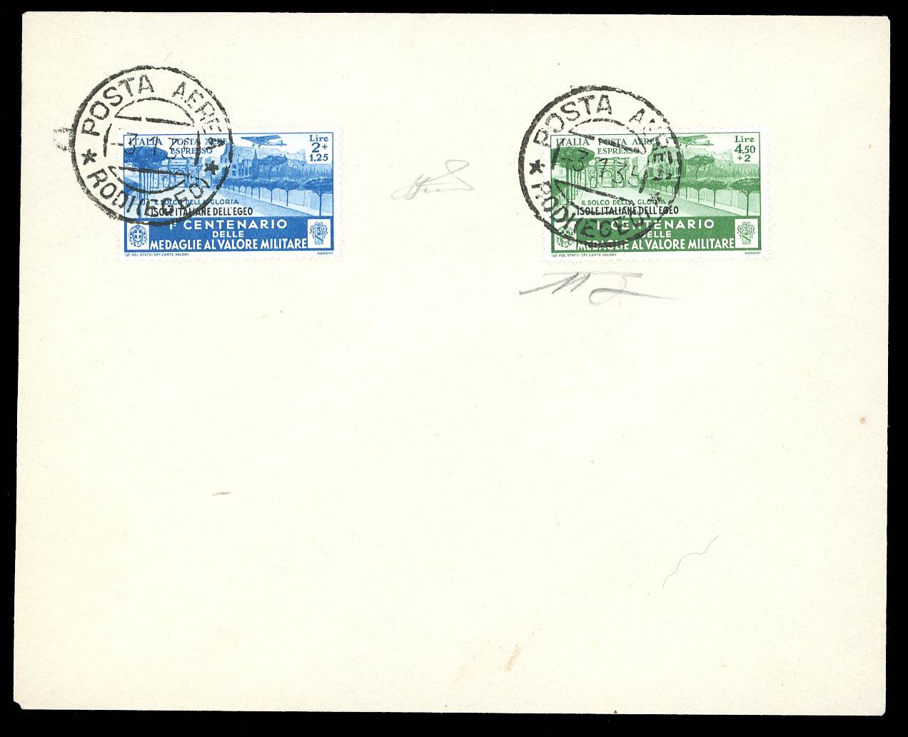 1934 - Medaglie, serie completa (80/90+A), perfetti, usati su tre buste non viaggiate (cat.Sassone € 2.600 come usati), Ferrario.