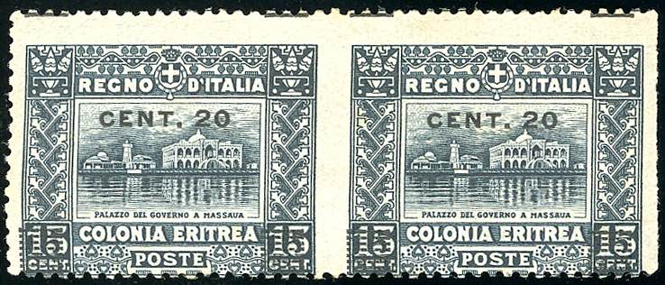 1916 - 20 su 15 cent. Soggetti Africani soprastampato, coppia orizzontale con il primo esemplare non dentellato a destra ed il secondo non ... Read more