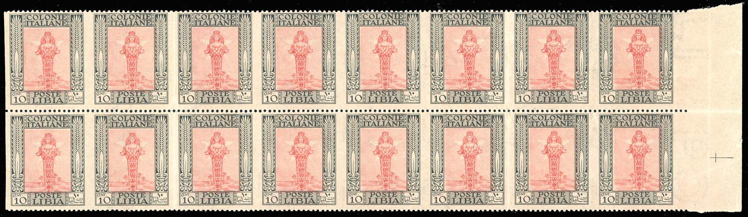 1921 - 10 cent. Pittorica, non dentellato verticalmente (24m), blocco di sedici esemplari, bordo di foglio, gomma integra, perfetto.