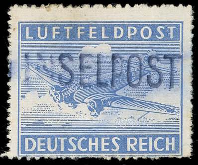 OCCUPAZIONE TEDESCA EGEO 1945 - Inselpost azzurro, emissione di Leros, perforato a zig-zag (7), nuovo senza gomma, perfetto. A. ed E.Diena, Raybaudi.