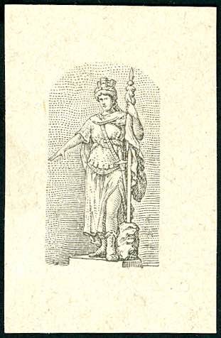 1918 - Pro combattenti, prova in nero del centro raffigurante la statua della libertà, su carta grigiastra, non dentellata e senza gomma, perfetta. Non comune. Ferrario.