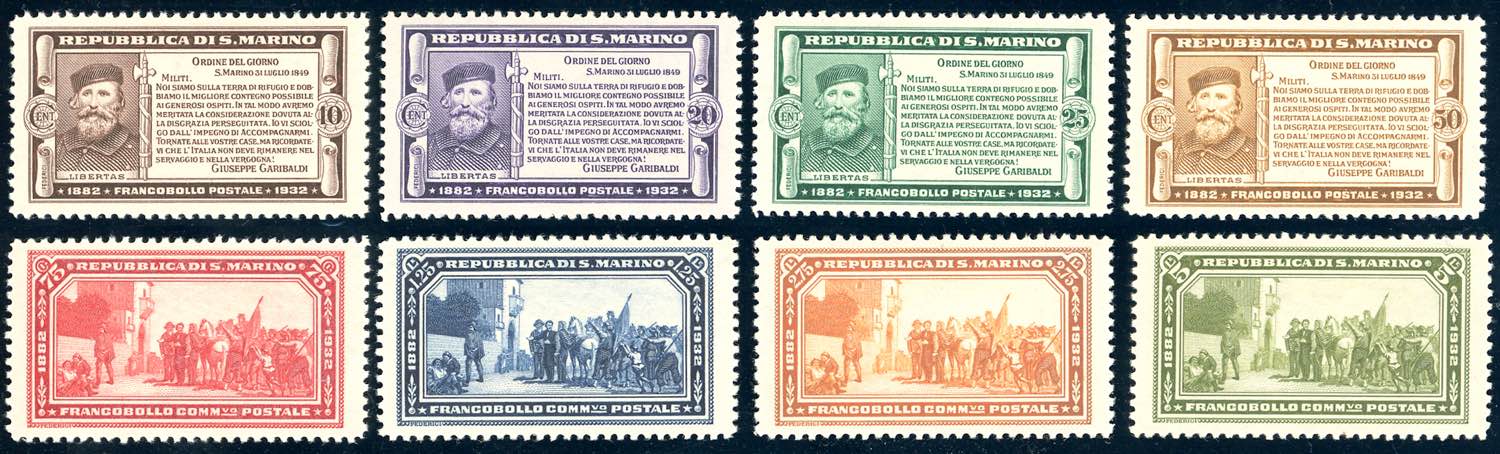 1932 - Garibaldi (168/175), gomma originale integra, perfetti. Ottima qualità. Cert. E.Diena per l'alto valore.