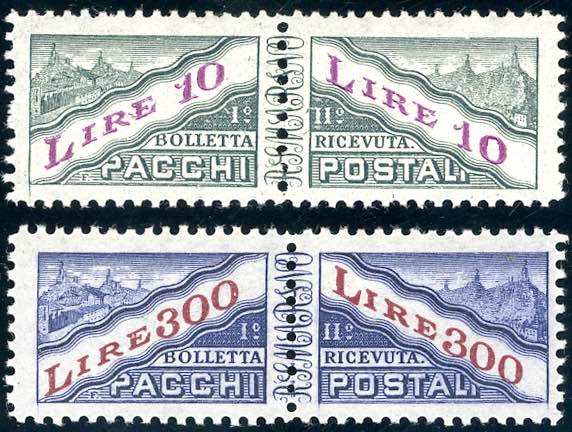 1953 - 10 lire, 300 lire, filigrana ruota (35/36), gomma originale integra, perfetti. Ferrario.