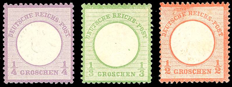 GERMANIA REICH 1872 - 1/4 g., 1/2 g. Aquila, grande scudo (13/15), gomma originale integra, perfetti.