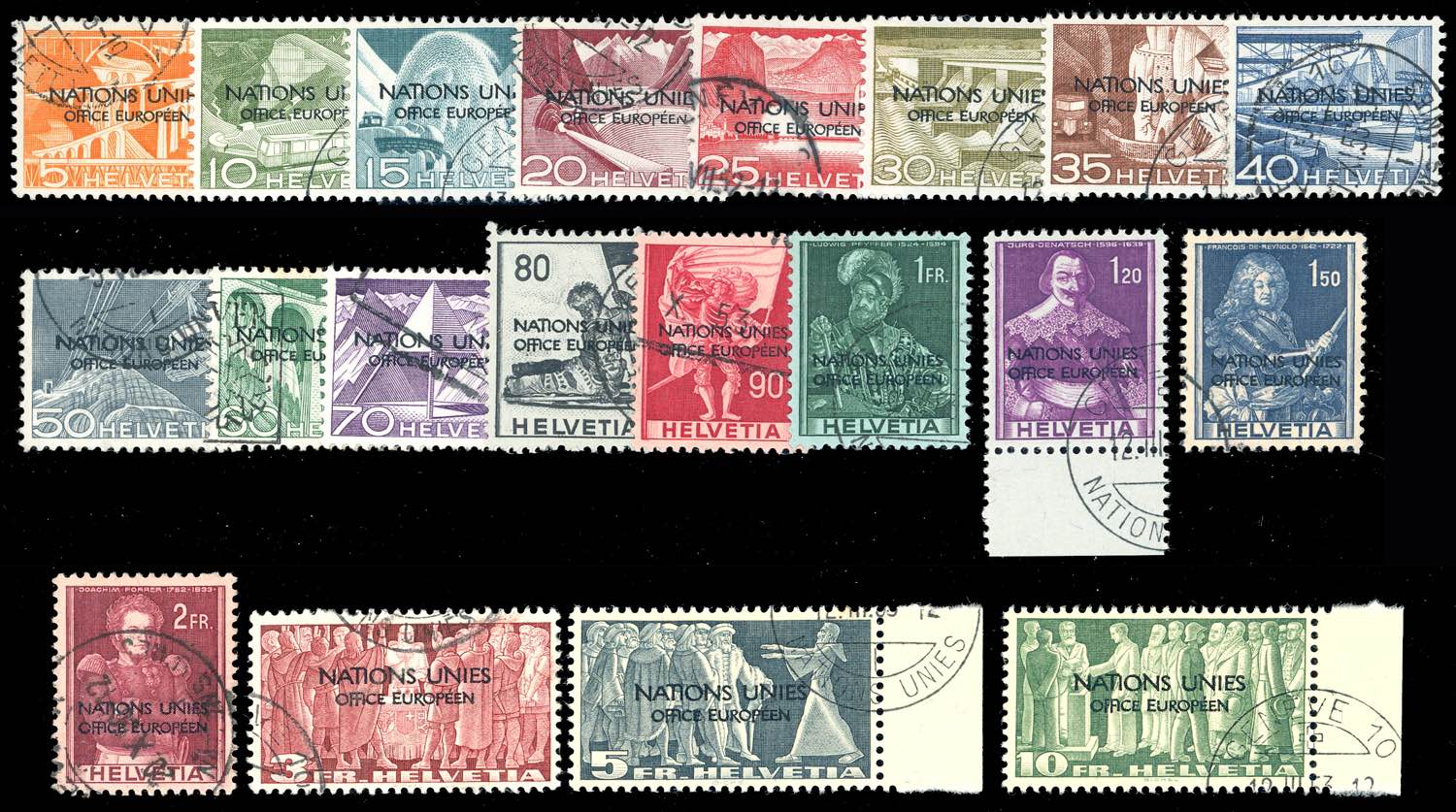 SVIZZERA SERVIZIO 1950 - Soprastampati "Nations Unies", serie completa (296/315), usati, perfetti.