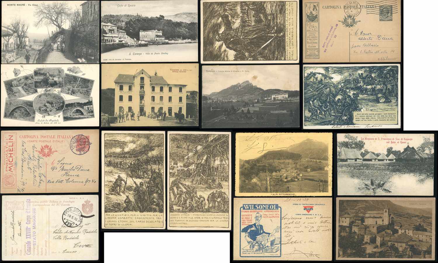 CARTOLINE 1900/1902 - Lotto di 16 cartoline viaggiate, selezionate con interessanti e rare presenze.