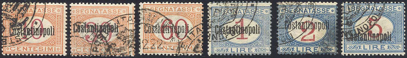 COSTANTINOPOLI SEGNATASSE 1922 - Soprastampati localmente (1/6), usati, perfetti. Cert. Ferrario.