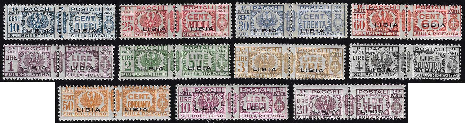PACCHI POSTALI 1927/37 - Fasci al centro, soprastampati (14/24), serie completa, nuovi, gomma originale, invisibile traccia di linguella, ... Read more