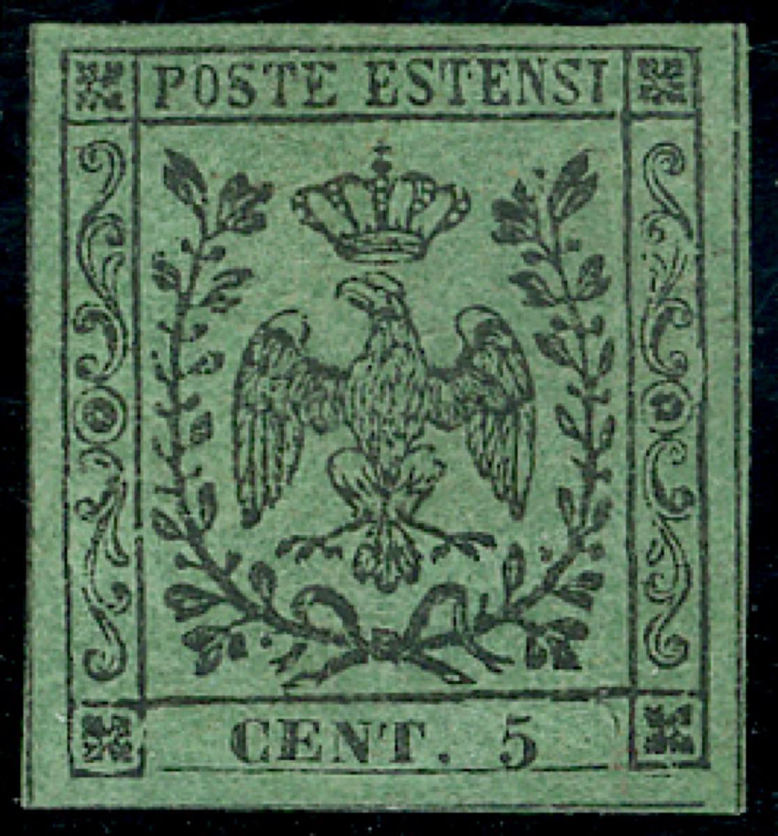Lot 94 - 1852 - 5 cent. verde, senza punto dopo le cifre (1), gomma ...