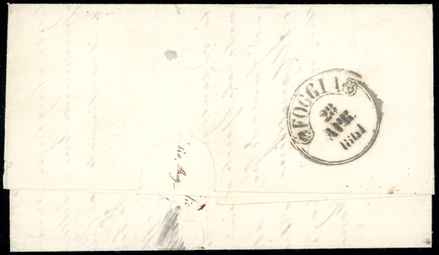 1861 - 2 grana azzurro chiaro, eccezionale striscia orizzontale di tre, perfetta, con il primo ed il terzo esemplare con filetto completo di inquadratura in alto, il secondo con DOPPIO FILETTO in alto (20k,20ka), su fresca lettera "Partenza da Napoli 27 APR. 1861" a Foggia, tassata 3. INSIEME UNICO DI GRANDE QUALITA'. Da esposizione. Cert. Ferrario. Ex coll. Imperato.