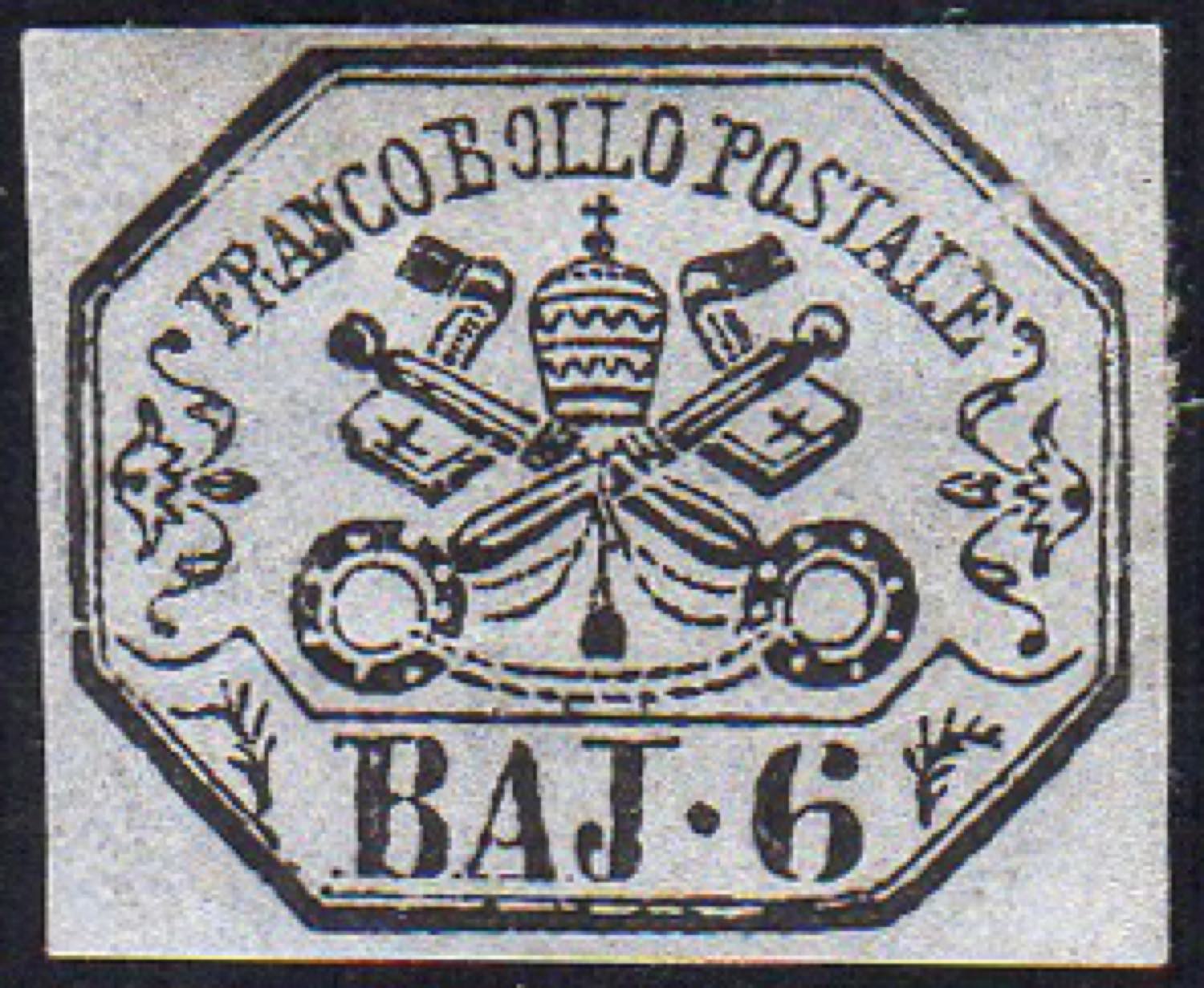 1864 - 6 baj lilla grigio (7A), gomma originale, perfetto. Cert. Ferrario.