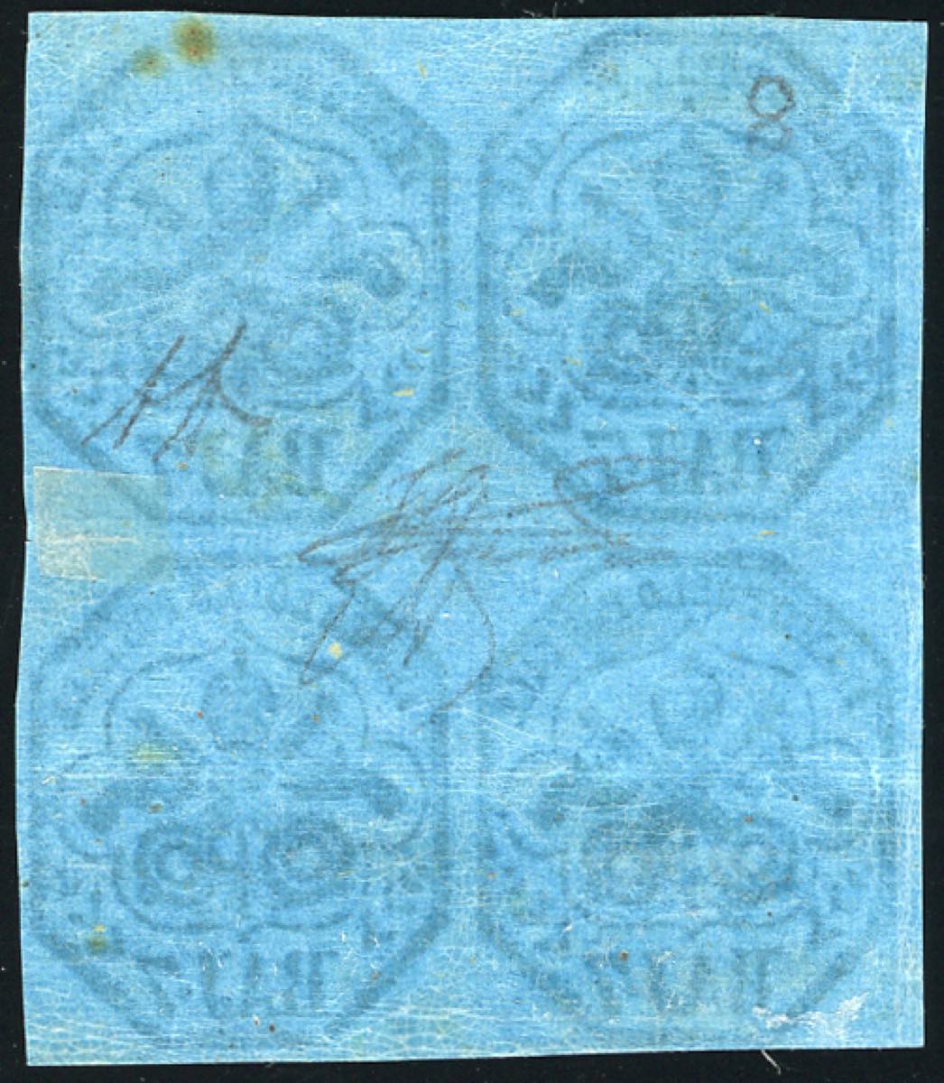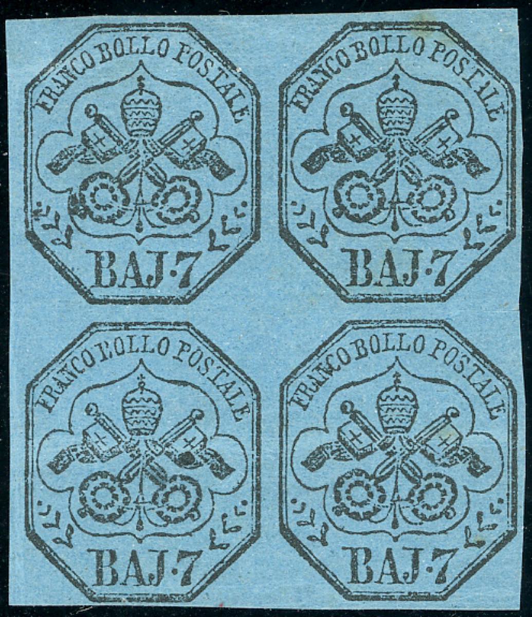 Lot 315 - 1852 - 7 baj azzurro (8), blocco di quattro, gomma ...