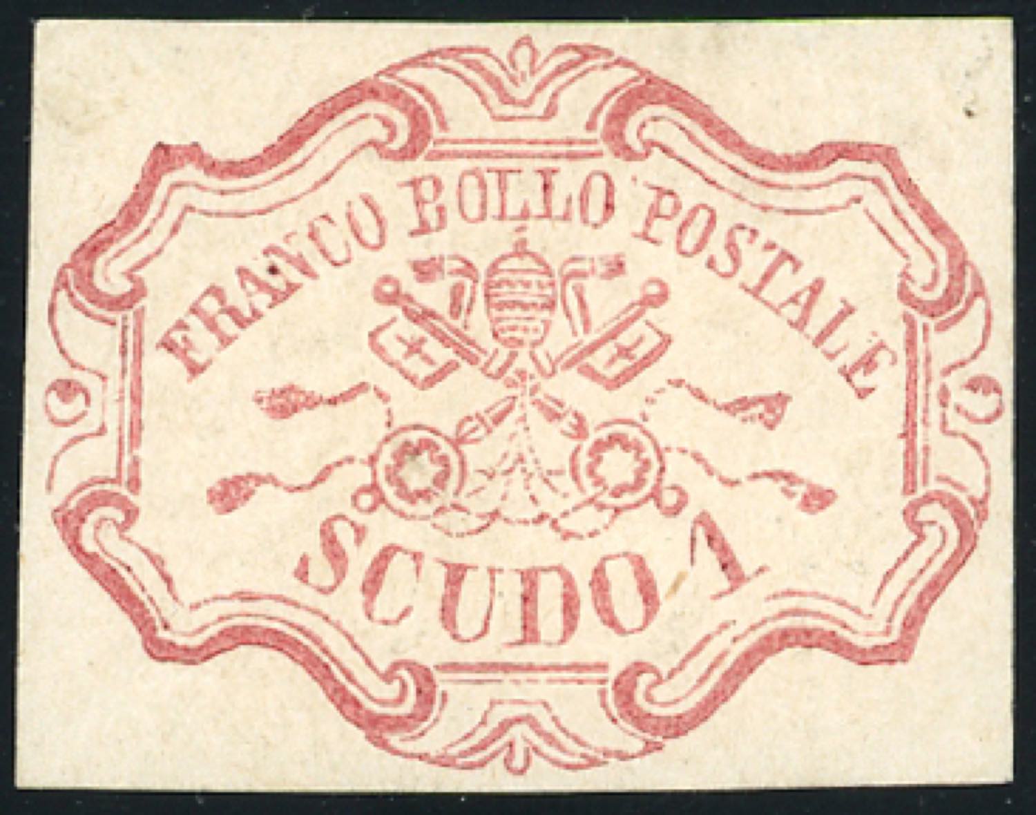 1852 - 1 scudo rosa carminio (11), gomma originale, buono/ottimo stato. Em.Diena, Fiecchi.