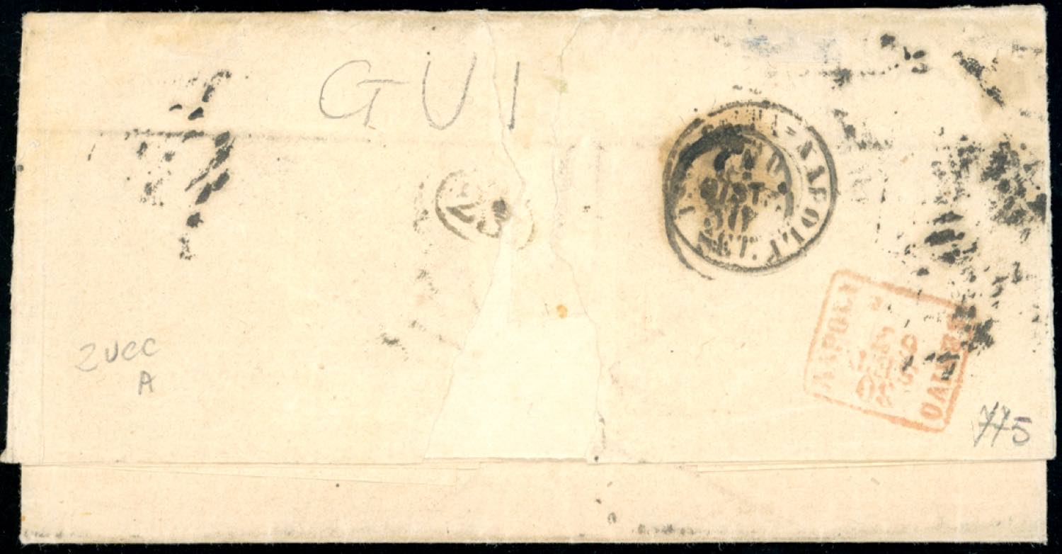 1867 - 20 cent. rosso bruno (18), perfetto, su lettera da Roma 30/9/1867 a Napoli, tassata 20 centesimi. Interessante e rara lettera risalente all'ULTIMO GIORNO precedente alla Convenzione tra Stato Pontificio e Regno d'Italia; questa combinazione di affrancatura e tassazione fu possibile per soli dieci giorni. E.Diena, Ferrario, dettagliato cert. Chiavarello.