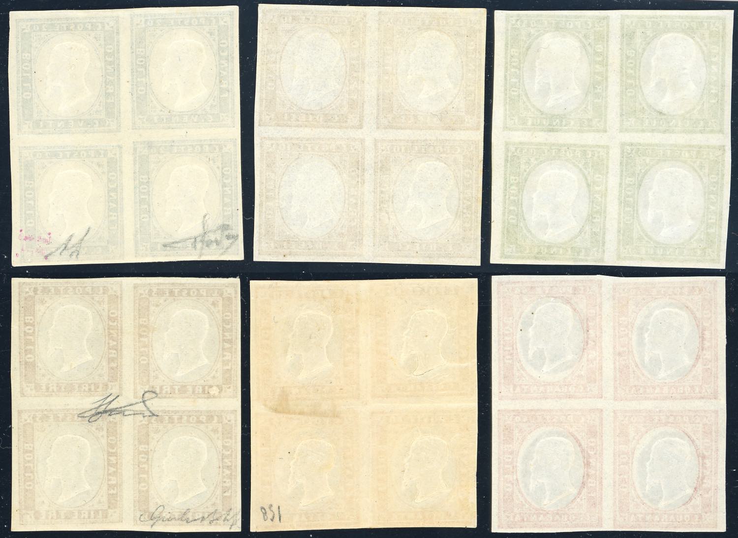 1863 - IV emissione, serie completa, tinte più comuni (13E/18A), blocchi di quattro, nuovi, gomma originale integra, perfetti. Bellissimi. ... Read more
