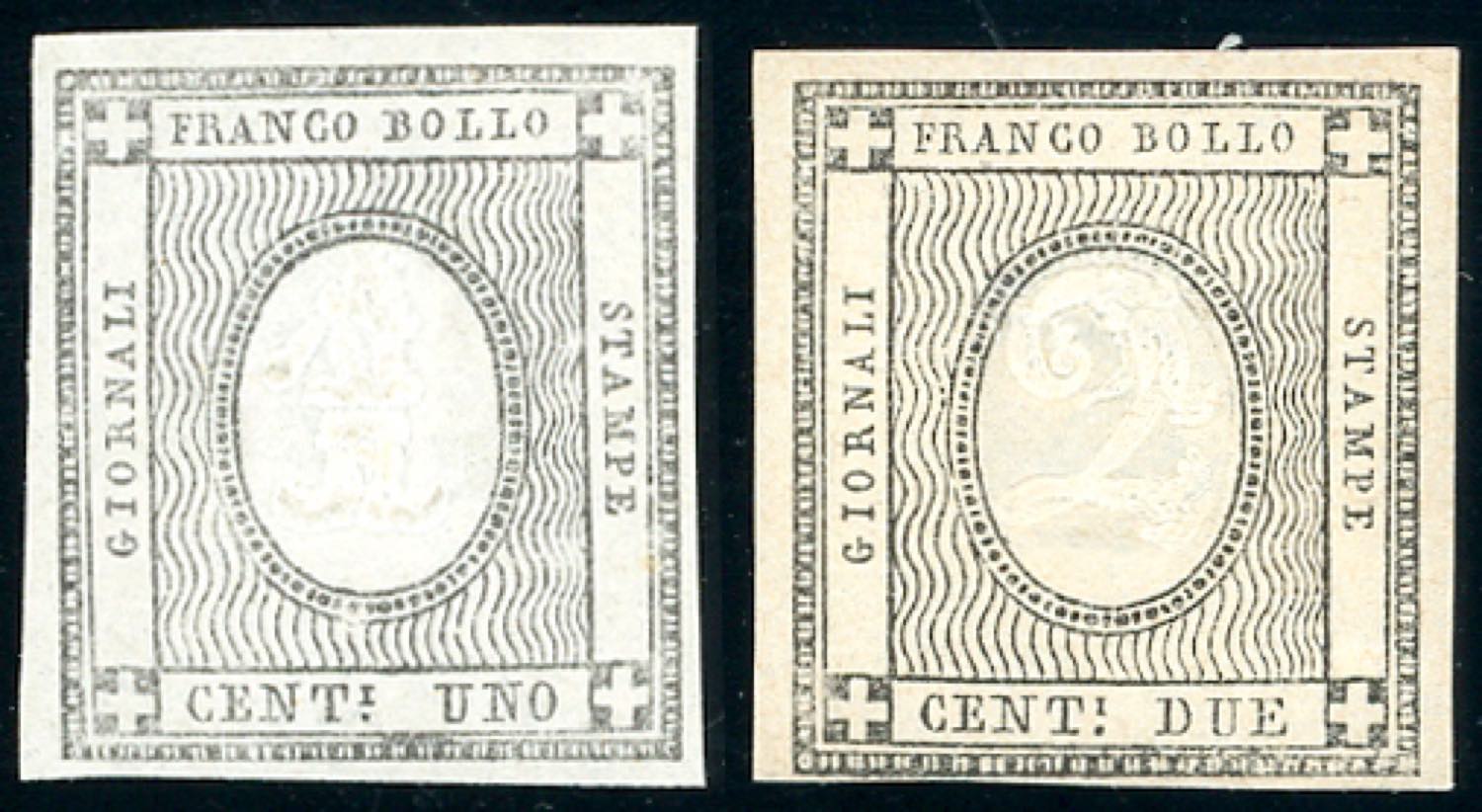 1861 - 1 e 2 cent. per stampati (19/20), nuovi, gomma originale integra, perfetti. Molto freschi. Ferrario. Ex coll. Imperato.