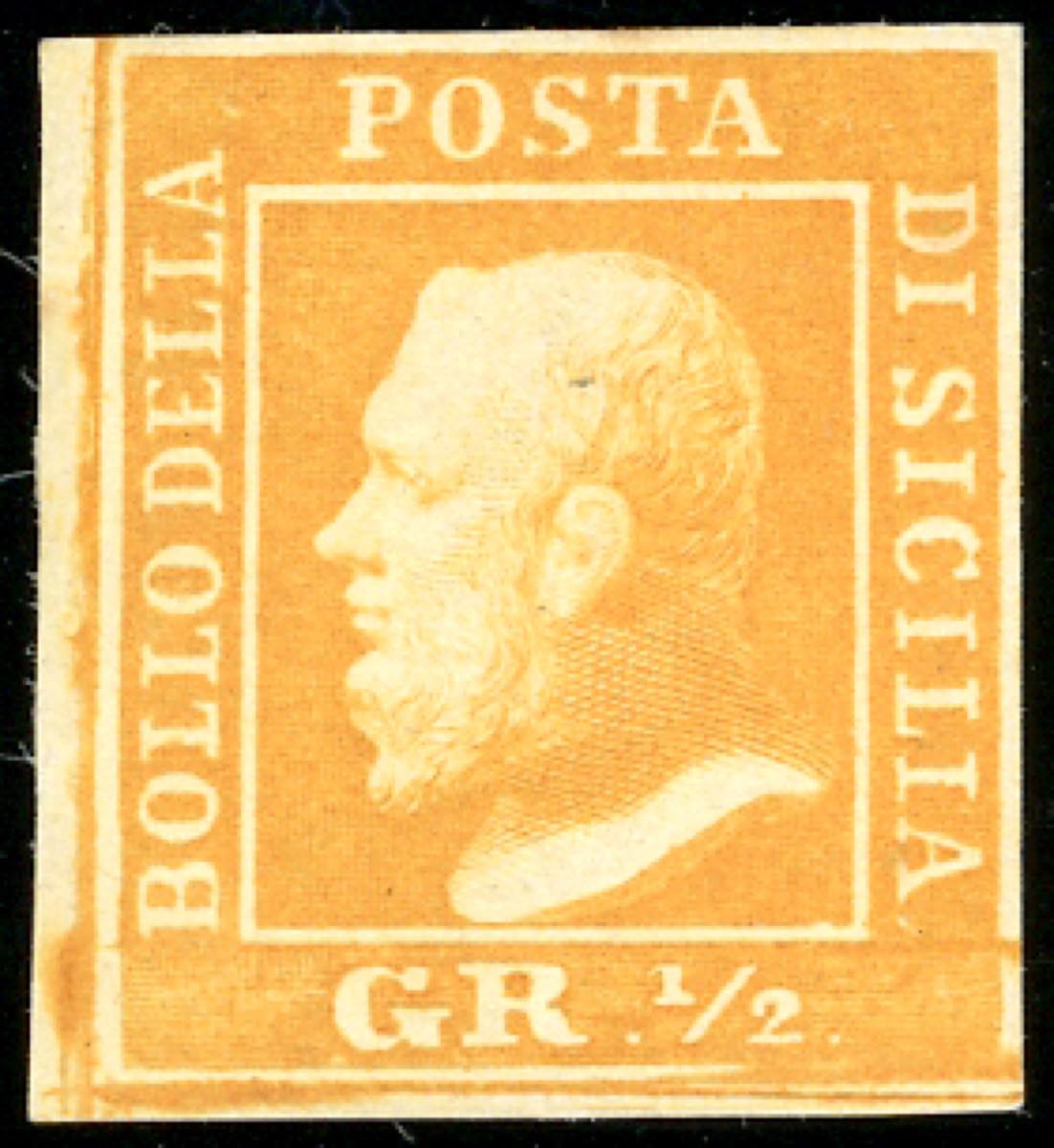 1859 - 1/2 grano arancio, II tavola, carta di Palermo (2), gomma originale, perfetto. Bello. Ferrario.