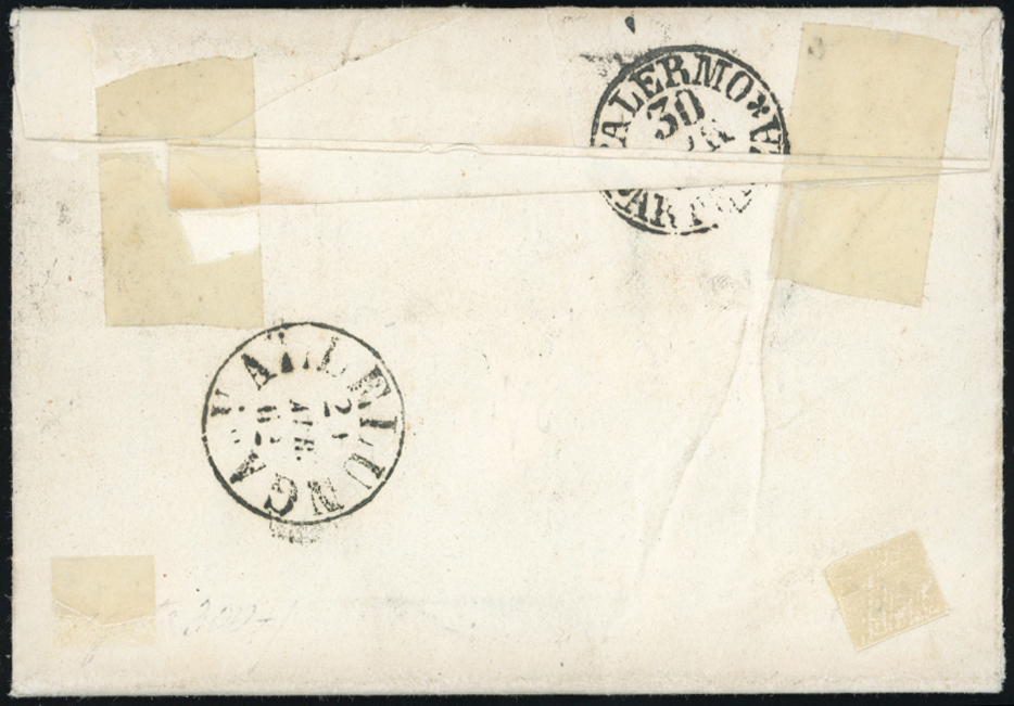 MUSSOMELI, cerchio punti 12 - 5 cent. (Sardegna 13Cc), coppia, perfetta, su lettera del 29/4/1862 per Chiusa. Molto bella. A.Diena, cert. Oro Raybaudi.