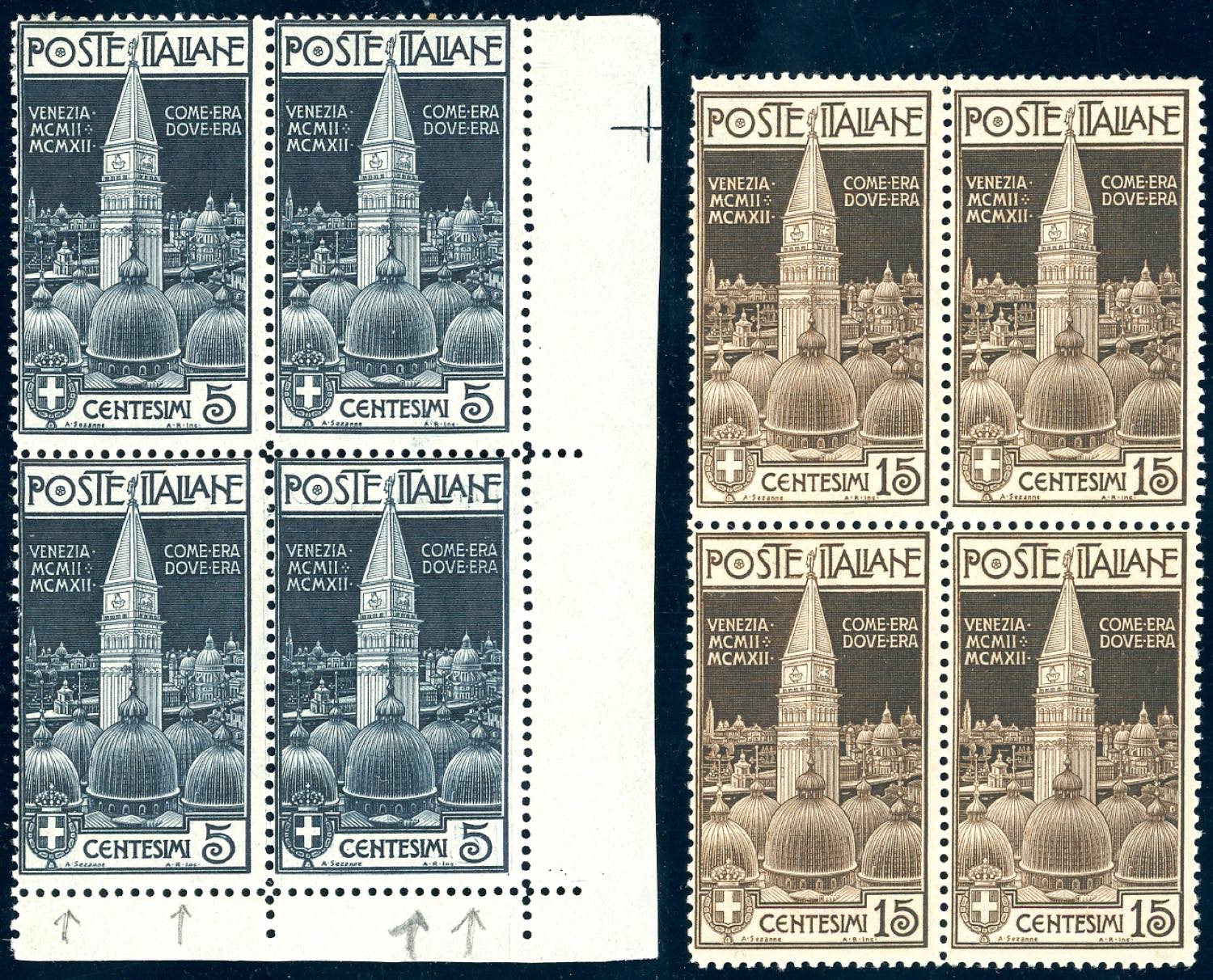 Lot 644 - 1912 - Campanile di San Marco, blocco di quattro, i due ...