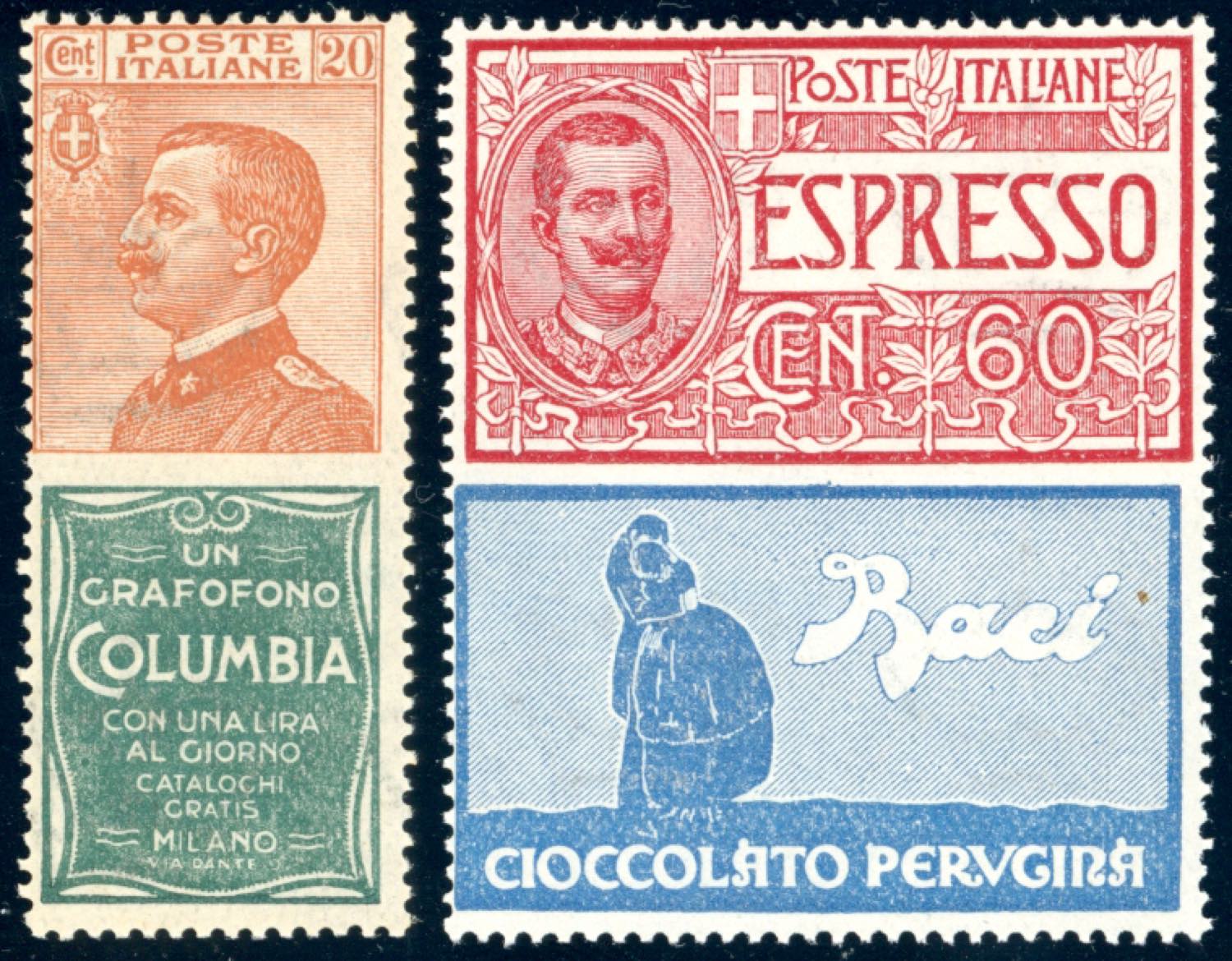 1925 - 20 cent. Columbia, 60 cent. Perugina, non emessi (20,21), gomma originale integra, perfetti. Colla e Ferrario per il 20 cent.