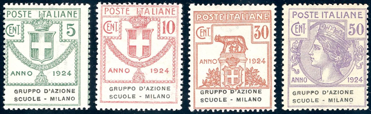 GRUPPO D'AZIONE SCUOLE - MILANO 1924 - Serie completa (38/41), gomma originale integra, perfetti. Ferrario.
