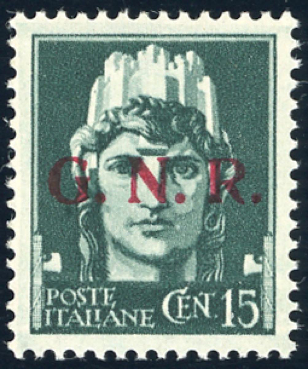 1943 - 15 cent. soprastampa G.N.R. di Brescia del II tipo (472/II), nuovo, gomma originale integra, perfetto. Fiecchi, Sirotti, cert. Ferrario.