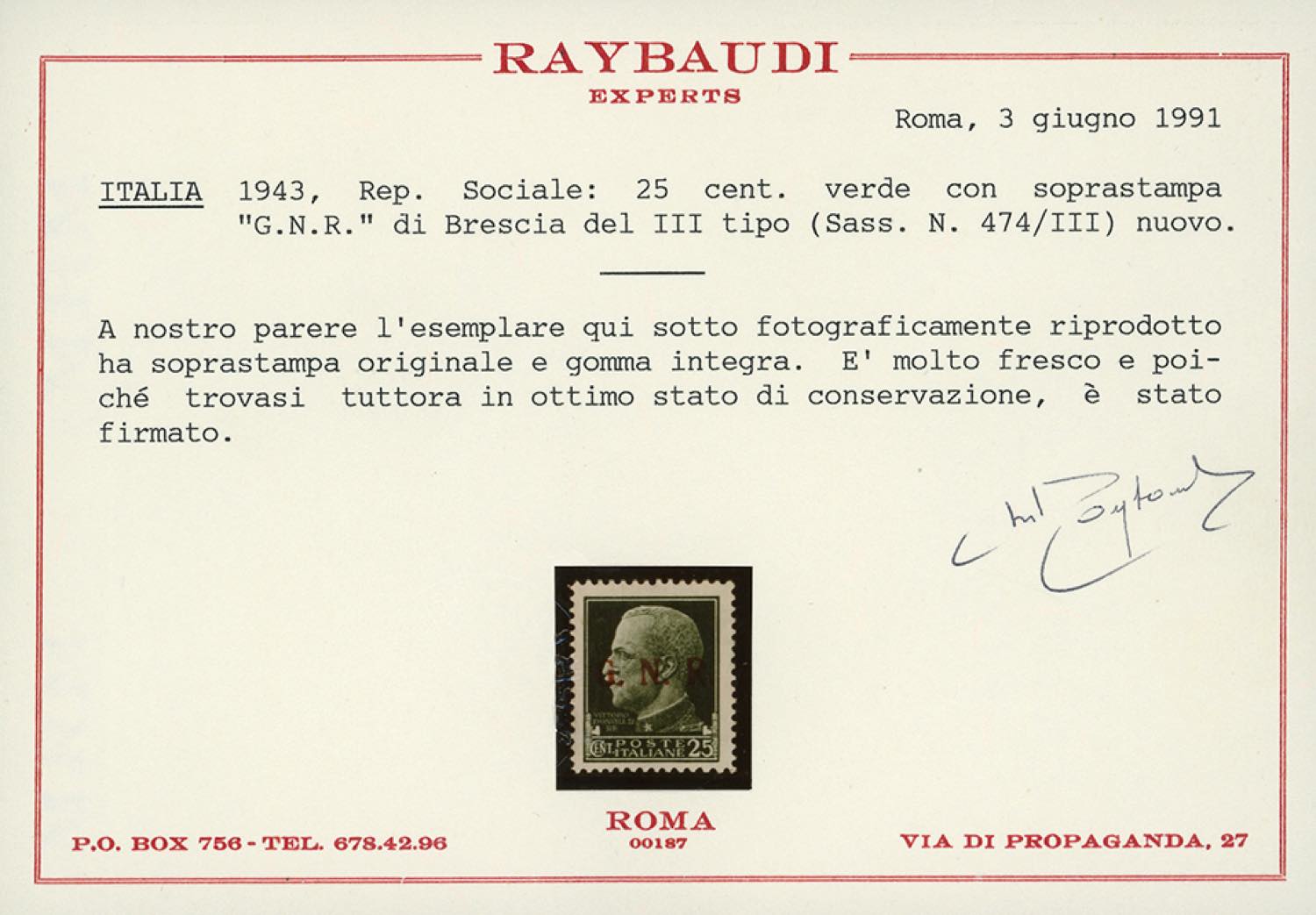 Lot 871 - 1943 - Soprastampa G.N.R. di Brescia, III tipo, serie ...